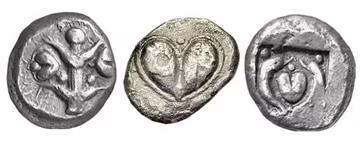 ↑古幣上的「心形」羅盤草