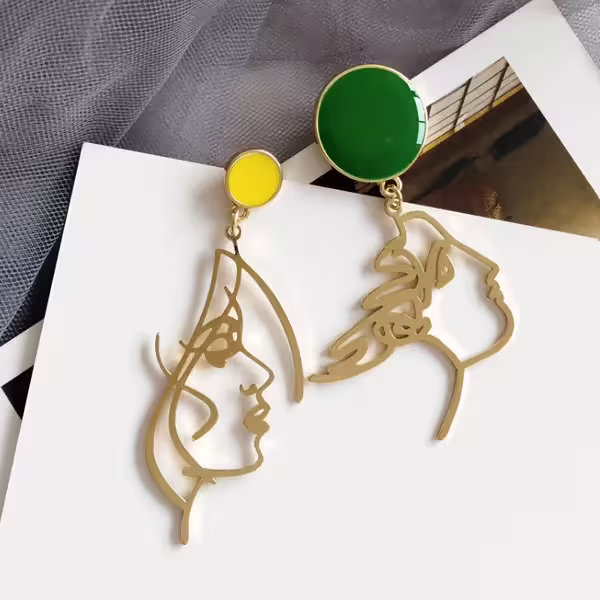 ▶名稱/女神的臉撞色簡筆畫×不對稱吊墜耳環