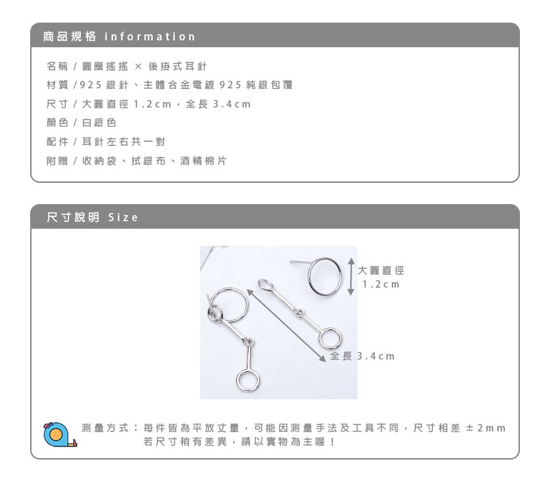 925銀針×圓圈搖搖×後掛式耳針-第4張