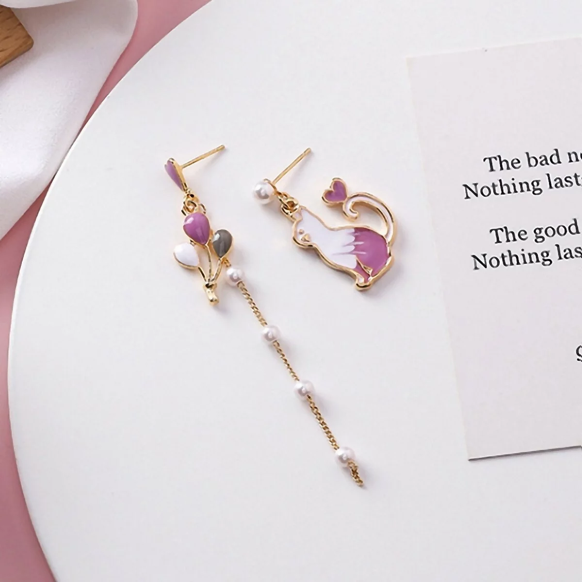 幻紫氣球貓咪×不對稱吊墜耳環