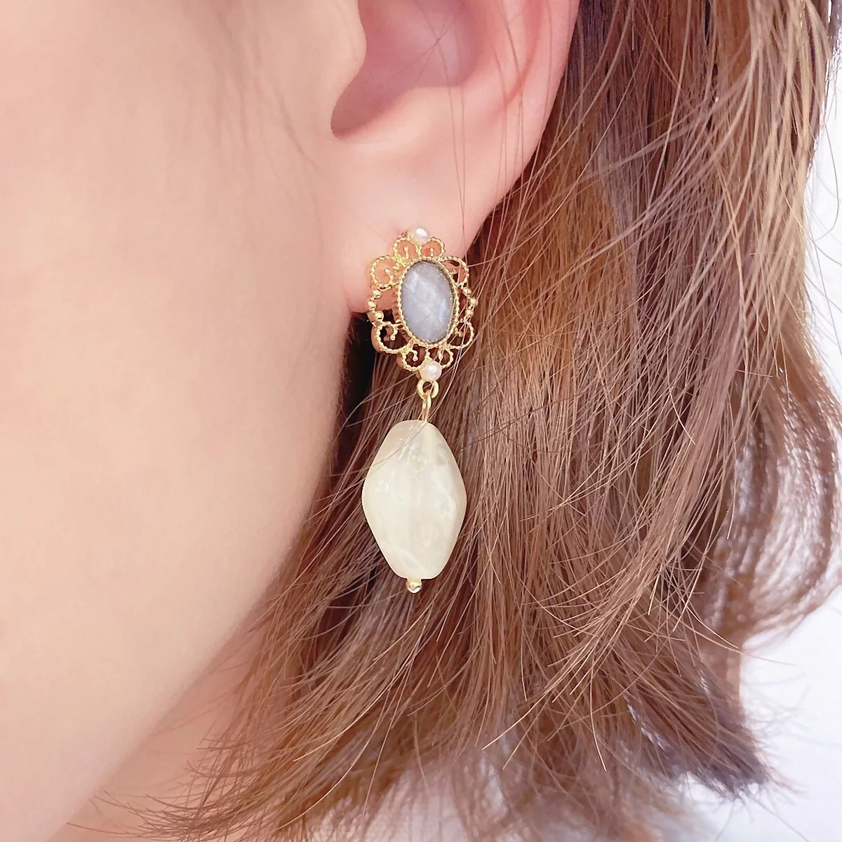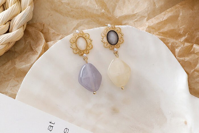 閱讀全文▶名稱/花邊寶石晶珠×不對稱吊墜耳環