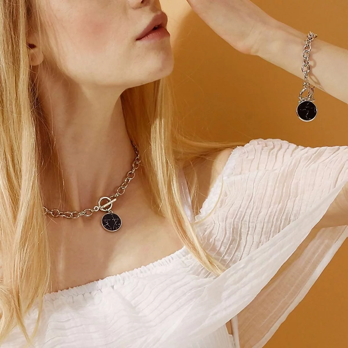 ▶尺寸/鍊長22.3cm,大理石直徑2.1cm,延長鍊5cm