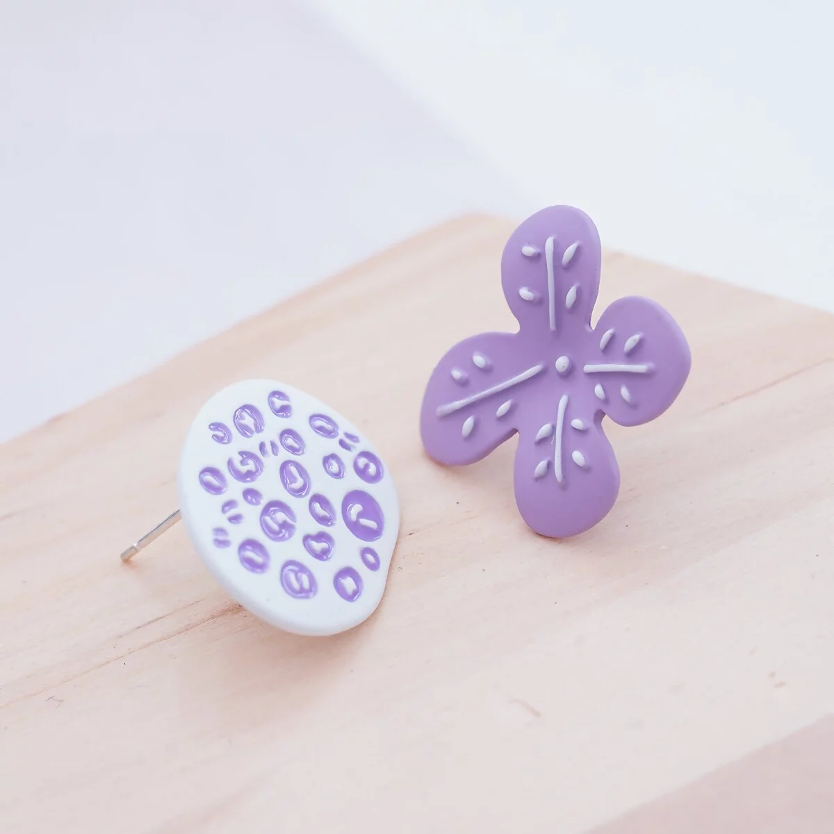 紫花與蓮藕×不對稱吊墜耳環-第1張