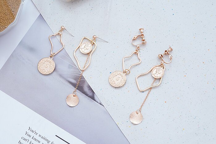 ▶名稱/不規則希臘硬幣×不對稱螺旋耳夾