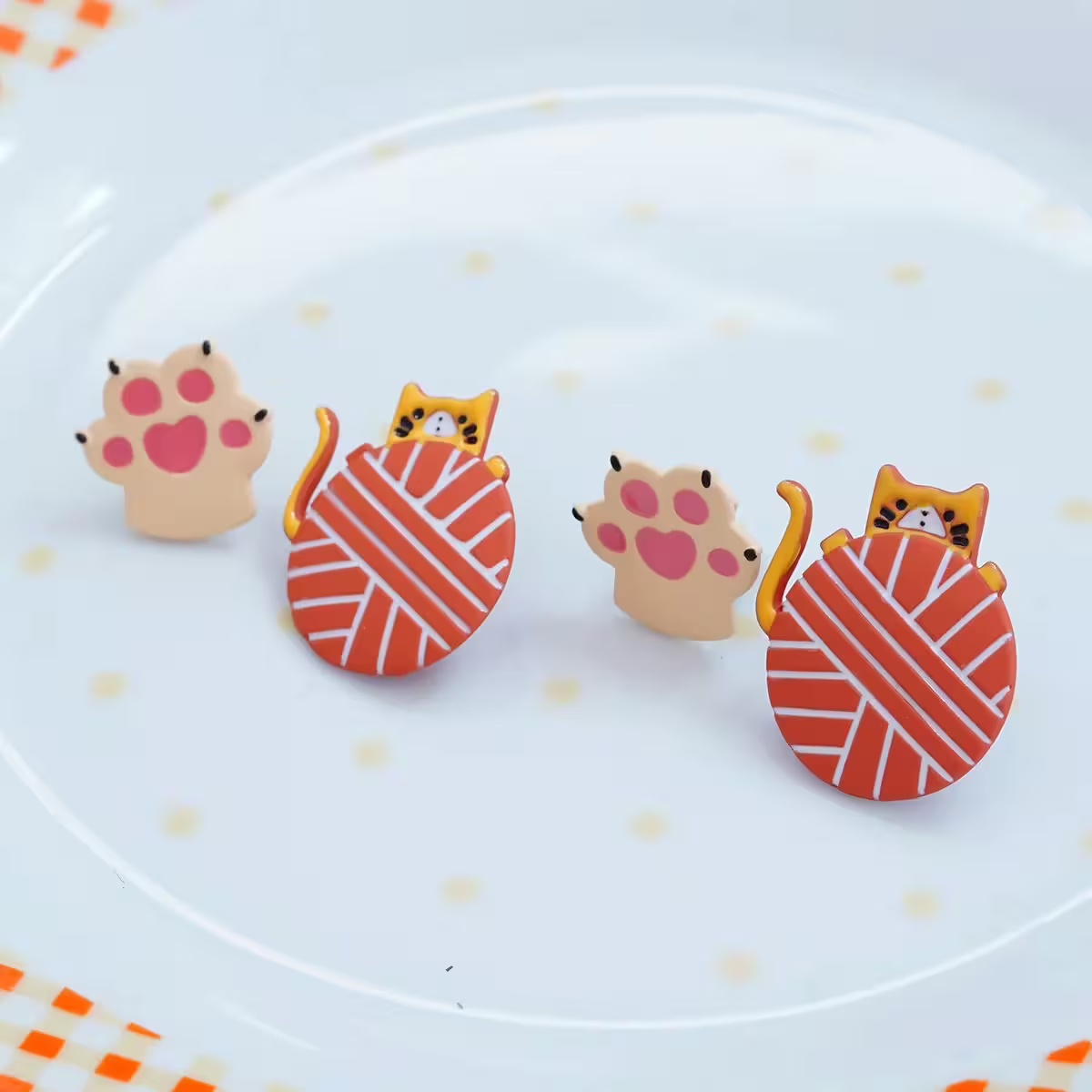 ▶名稱/貓咪玩毛線球×不對稱三角耳夾