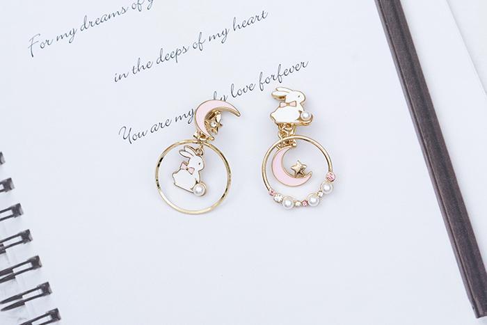 ▶名稱/小兔彎月星空圓環×不對稱三角耳夾×共二色