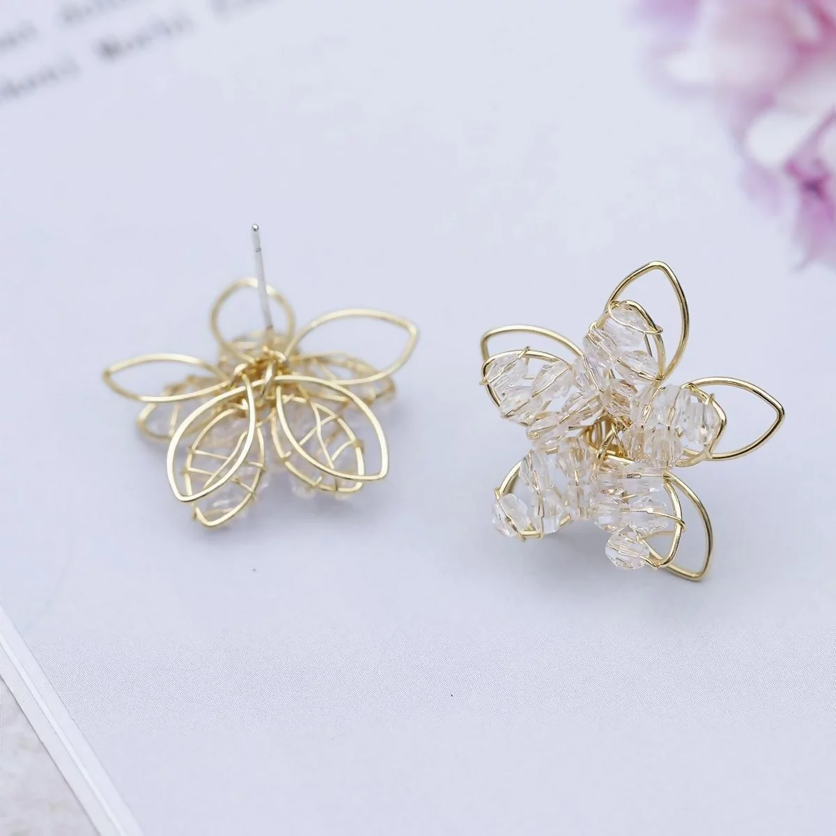 ▶名稱/水晶編織鏤空小花×吊墜耳環