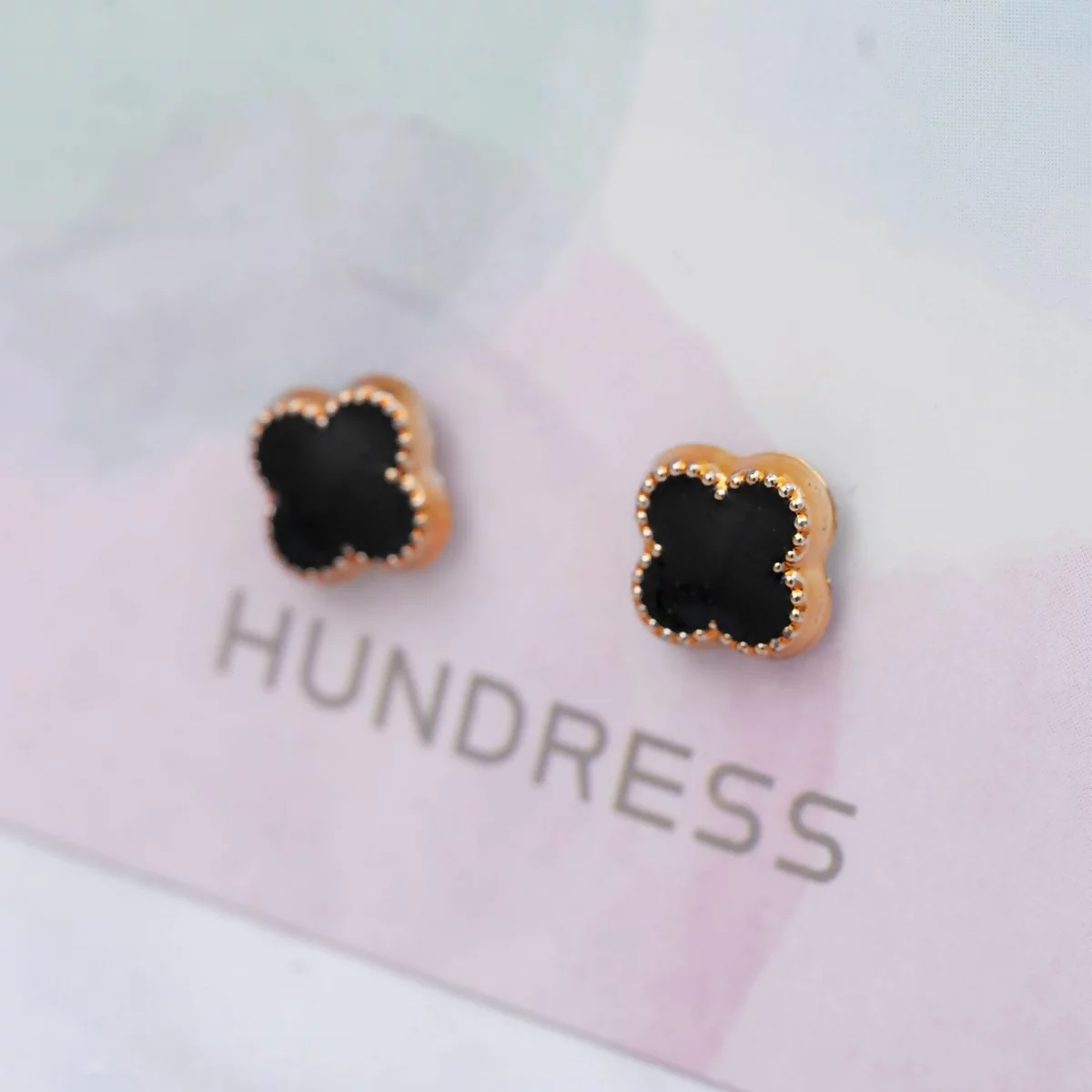 黑色四葉花瓣×磁吸耳夾/裝飾小物-第1張