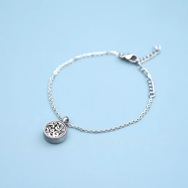 您好,薰香釦的材質是鋼和合金,項鍊的部份是鋼;此款是「項鍊」不是「手鍊」呦,如果您要手鍊,請前往這個傳送門→貓頭鷹×薰香釦×手鍊