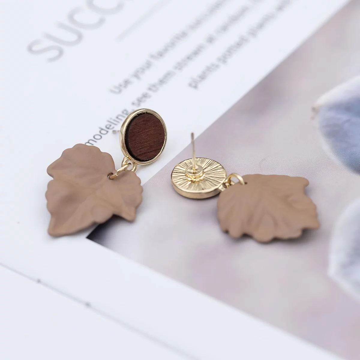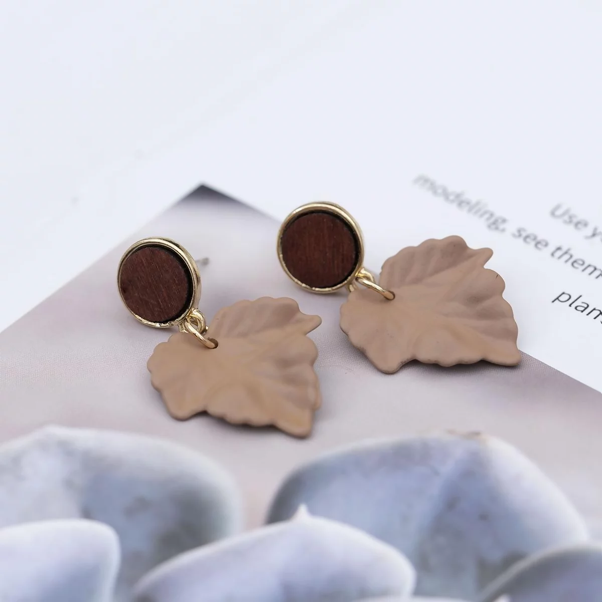 ▶名稱/楓葉圓木片×吊墜耳環