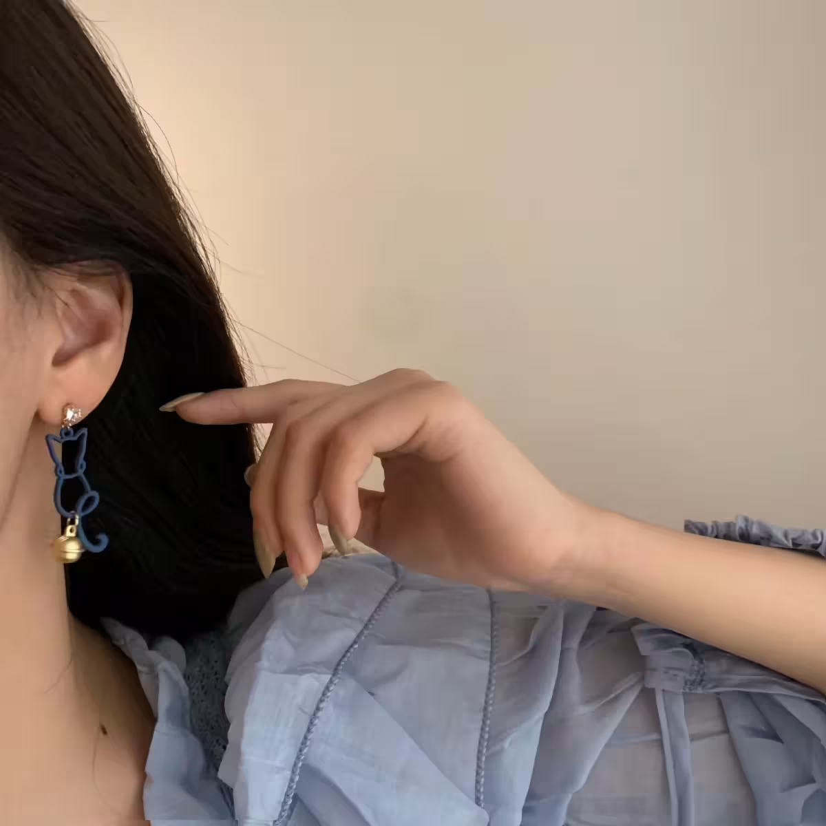 ▶名稱/藍貓輪廓小鈴鐺×吊墜耳環