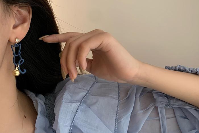 ▶名稱/藍貓輪廓小鈴鐺×螺旋耳夾