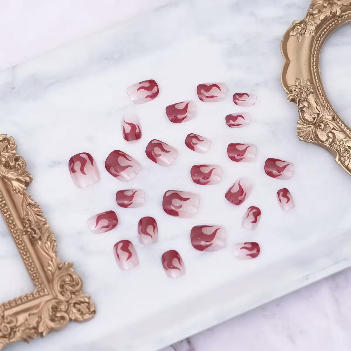 熱情紅火焰透粉亮面×穿戴式手指甲片×二十四入 -第6張