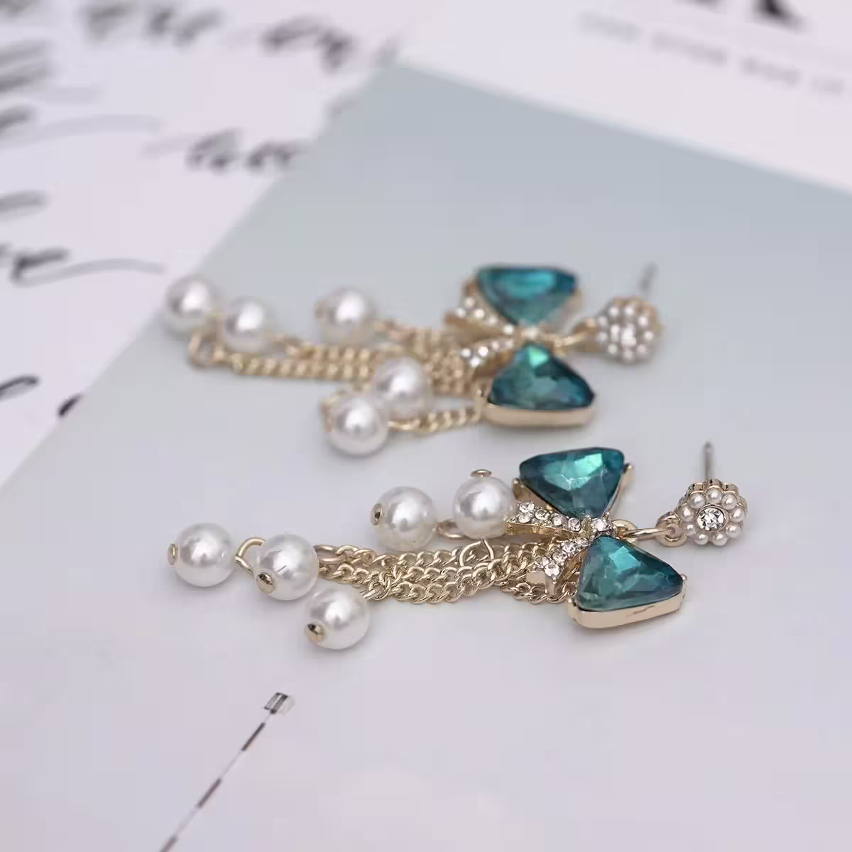 ▶名稱/藍晶領結珍珠流蘇簾×吊墜耳環