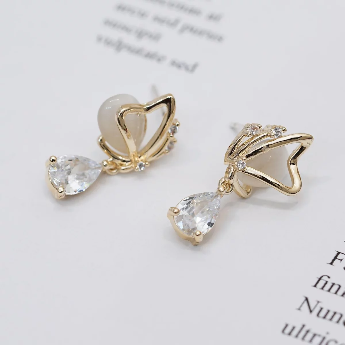 貓眼石蝴蝶晶鑽水滴×吊墜耳環