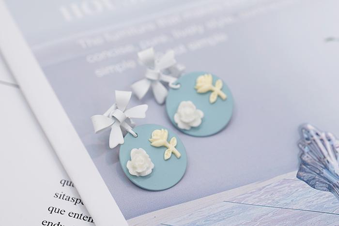 ▶名稱/白領結藍底玫瑰花×三角耳夾