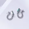 方型綠鑽鍊條×後掛式吊墜耳環