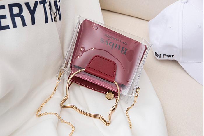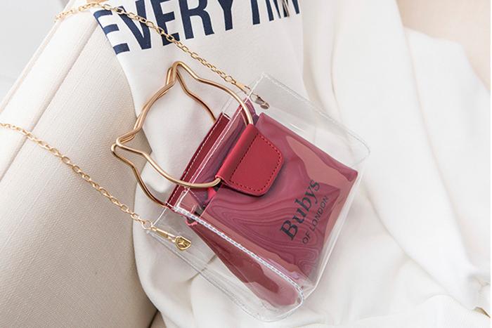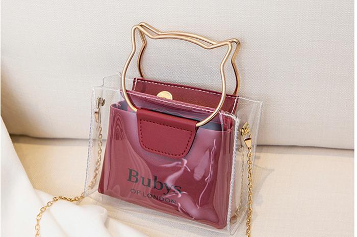 閱讀全文▶名稱/貓咪金屬提把×雙層透明皮革×斜背包×酒紅