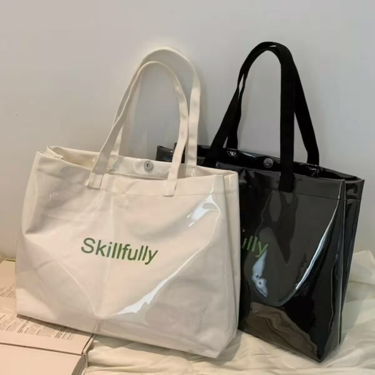 ▶名稱/英文字母透明亮面×帆布袋×托特包×黑色