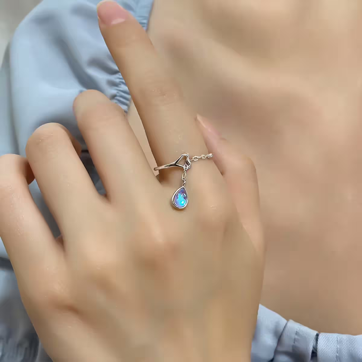 ▶名稱/月光水滴垂鍊×開口戒指