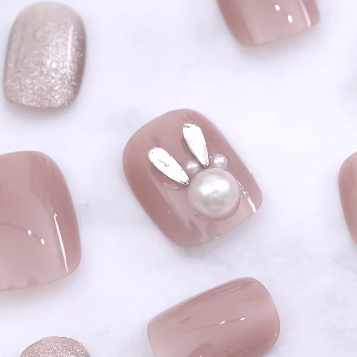 ▶名稱/珍珠兔粉色貓眼亮面×穿戴式手指甲片×二十四入