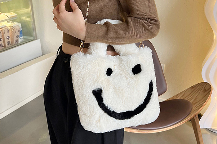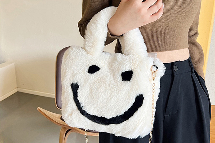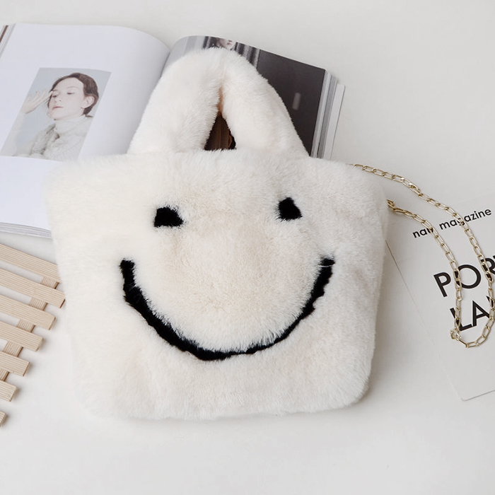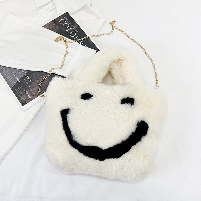 ▶名稱/笑臉毛絨絨手提×鍊條斜背包×米白