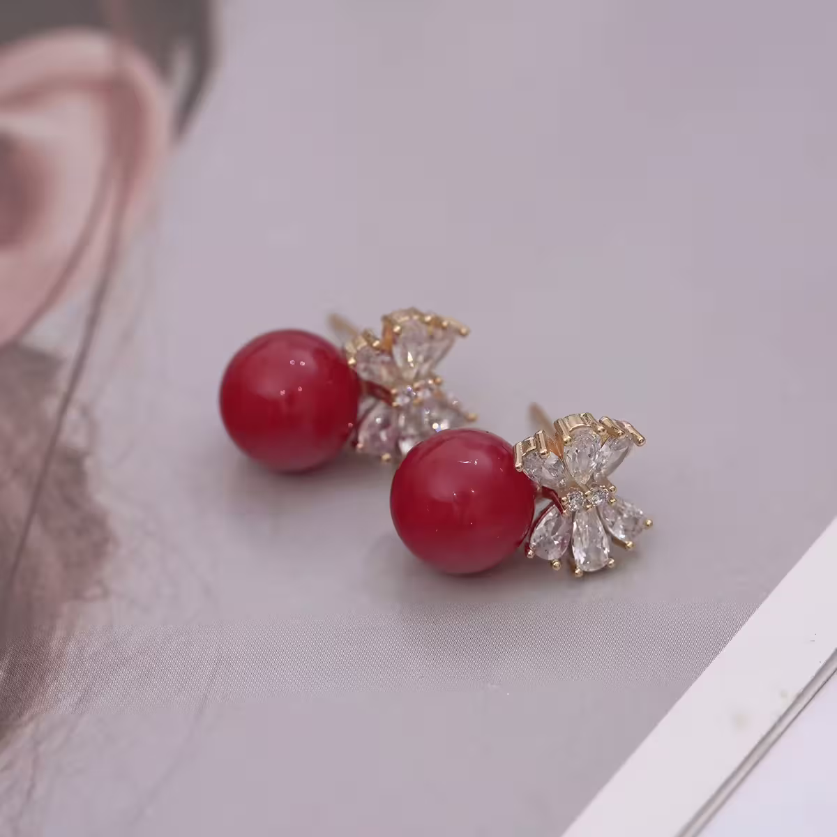 ▶名稱/輕奢蝴蝶結紅球×吊墜耳環