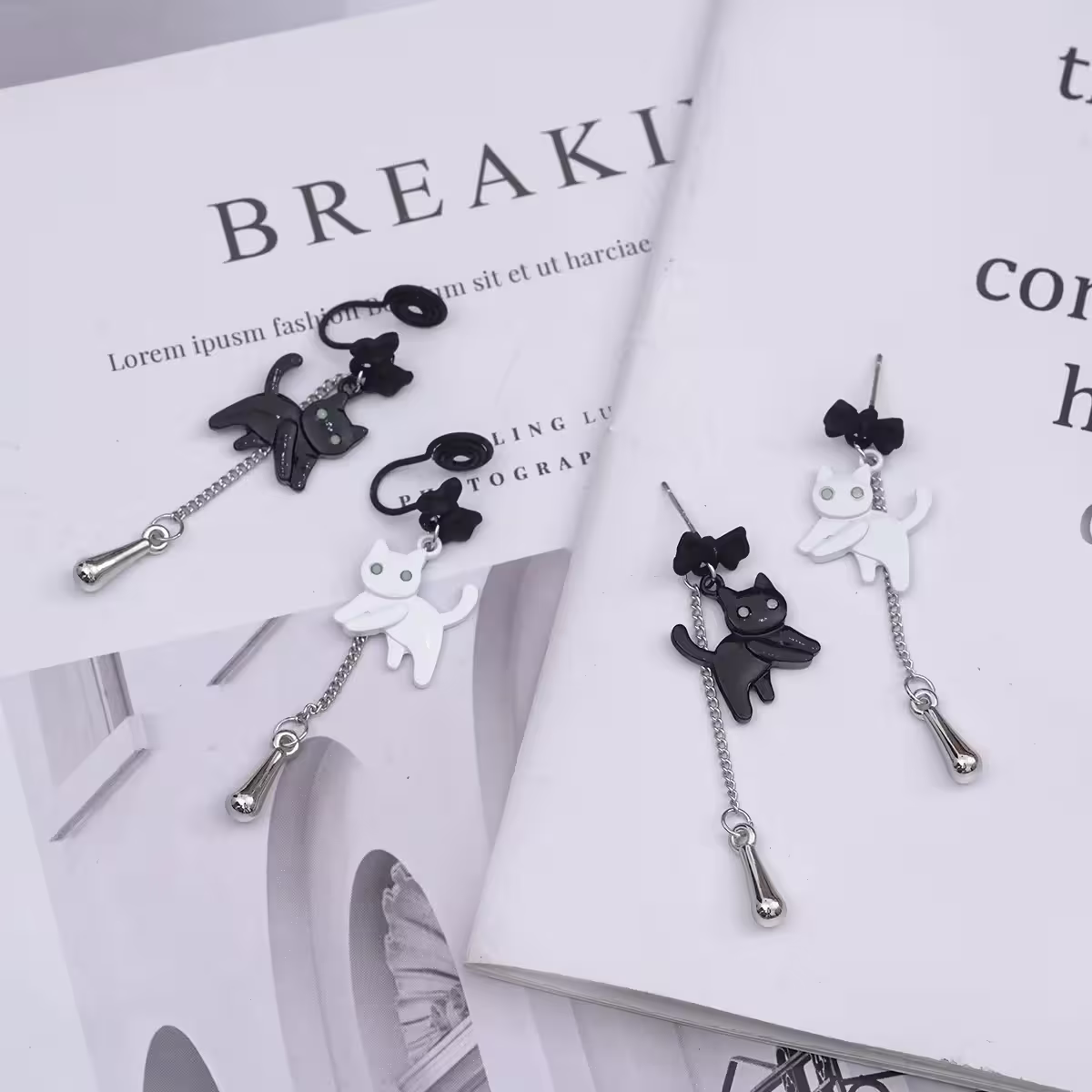 ▶名稱/黑白雙貓×不對稱蚊香盤U型耳夾