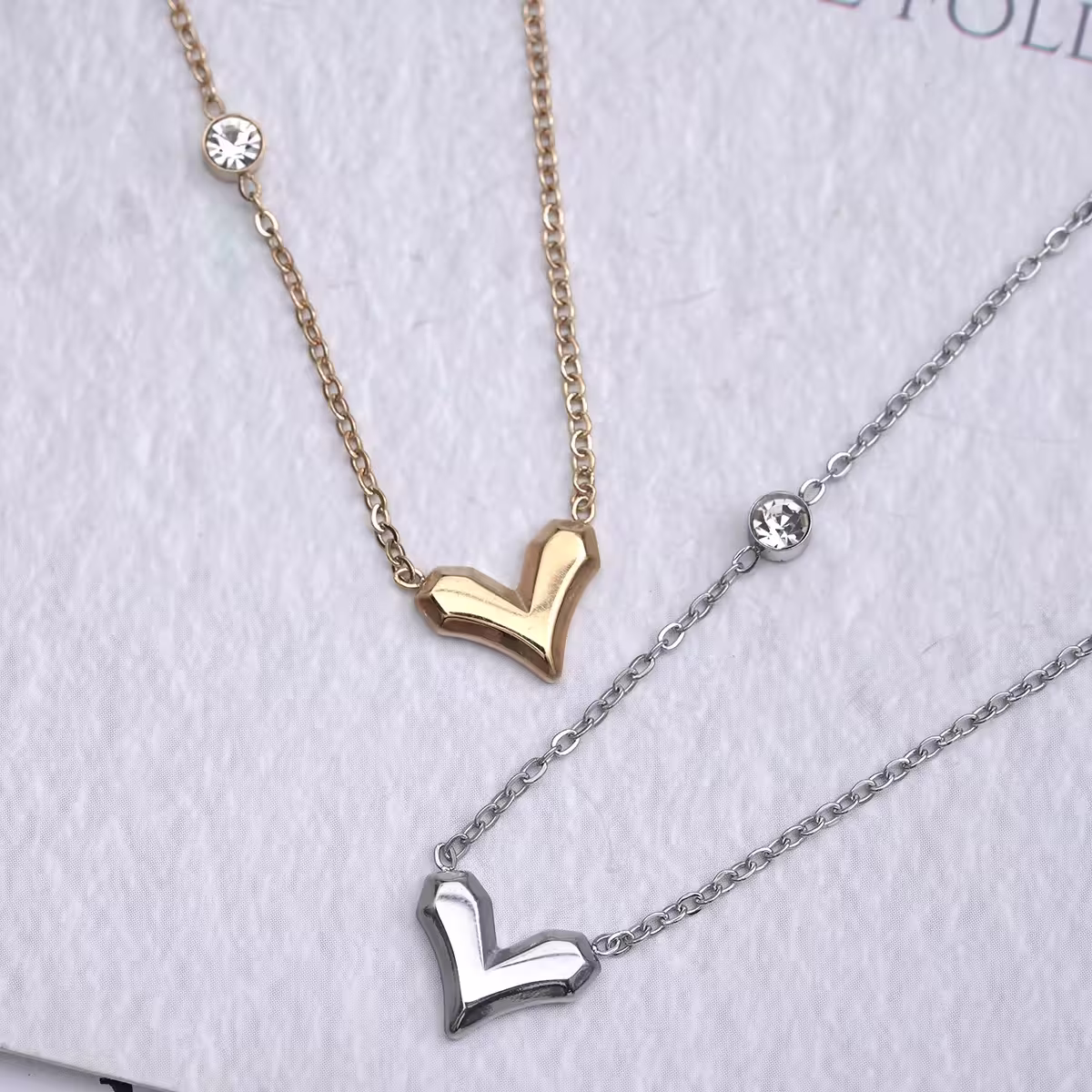 316鋼飾×愛心點鑽×鎖骨項鍊×金色