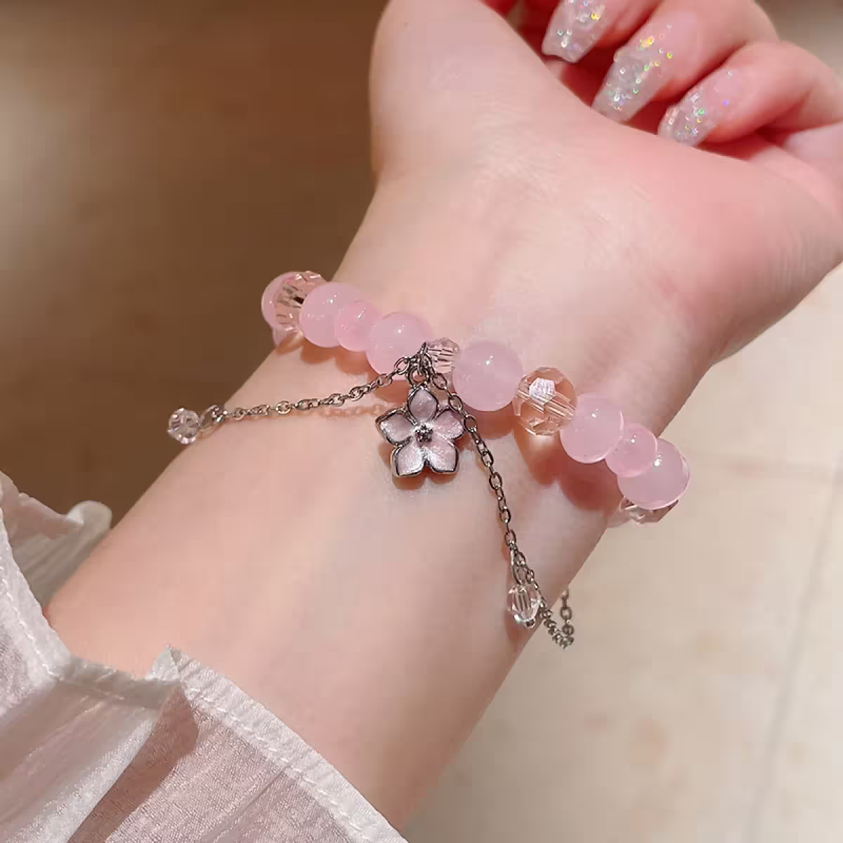 ▶名稱/粉嫩春桃×固定式串珠手鍊