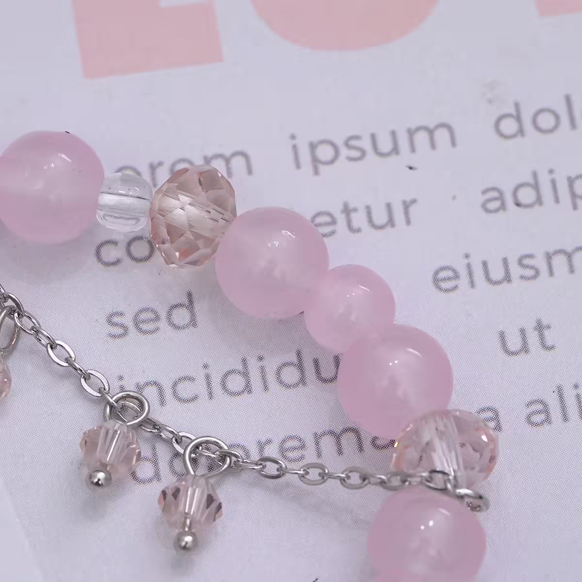 ▶名稱/粉嫩春桃×固定式串珠手鍊