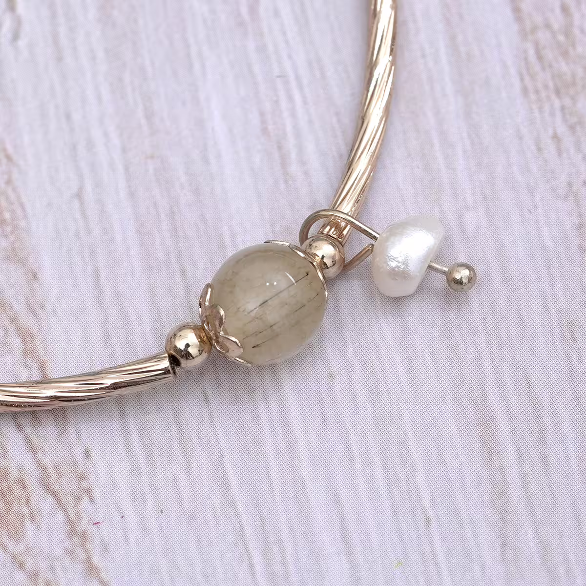 ▶名稱/暖駝彎管珍珠琉璃×固定式串珠手鍊