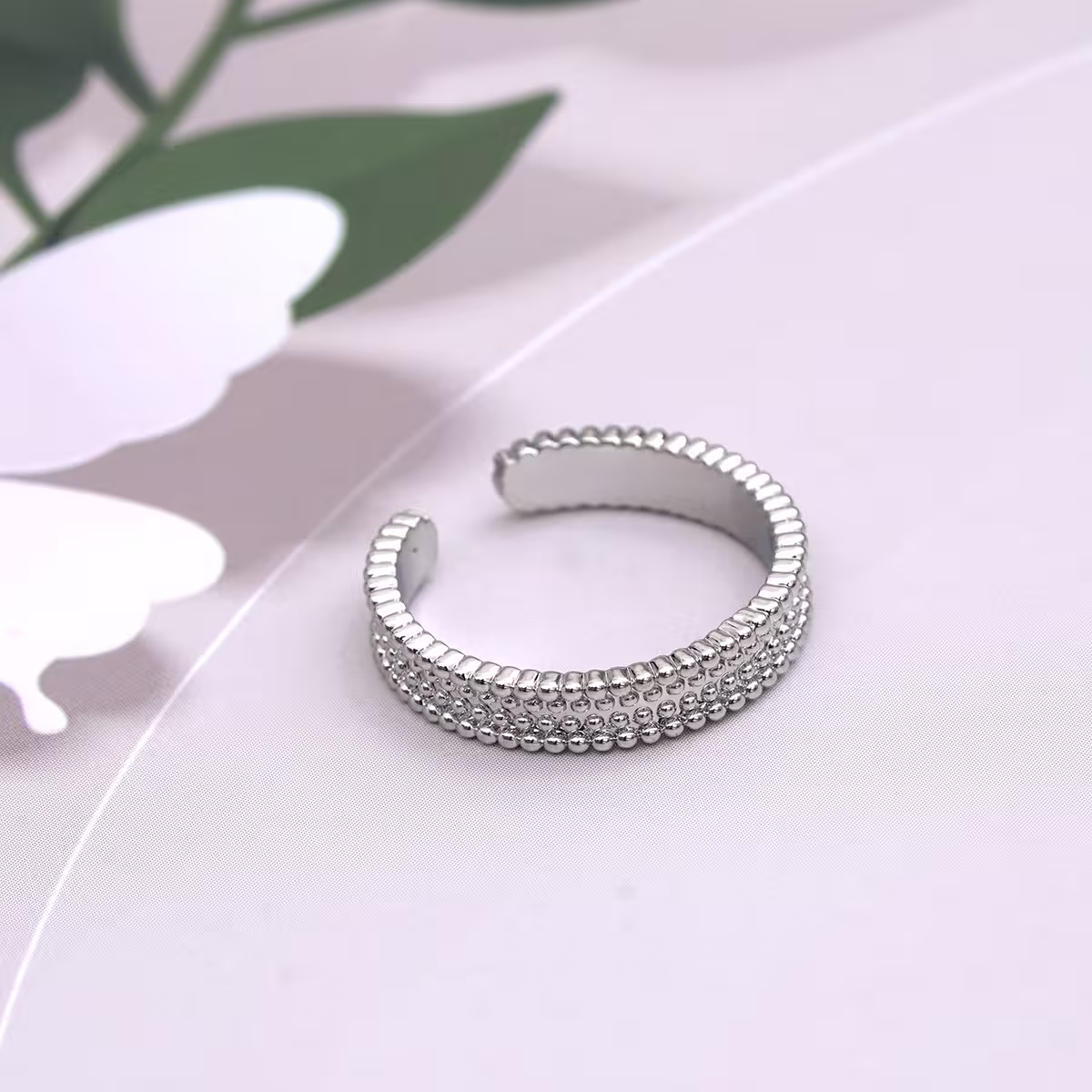 ▶名稱/點點紋寬窄鋯鑽×三套件戒指組×銀色