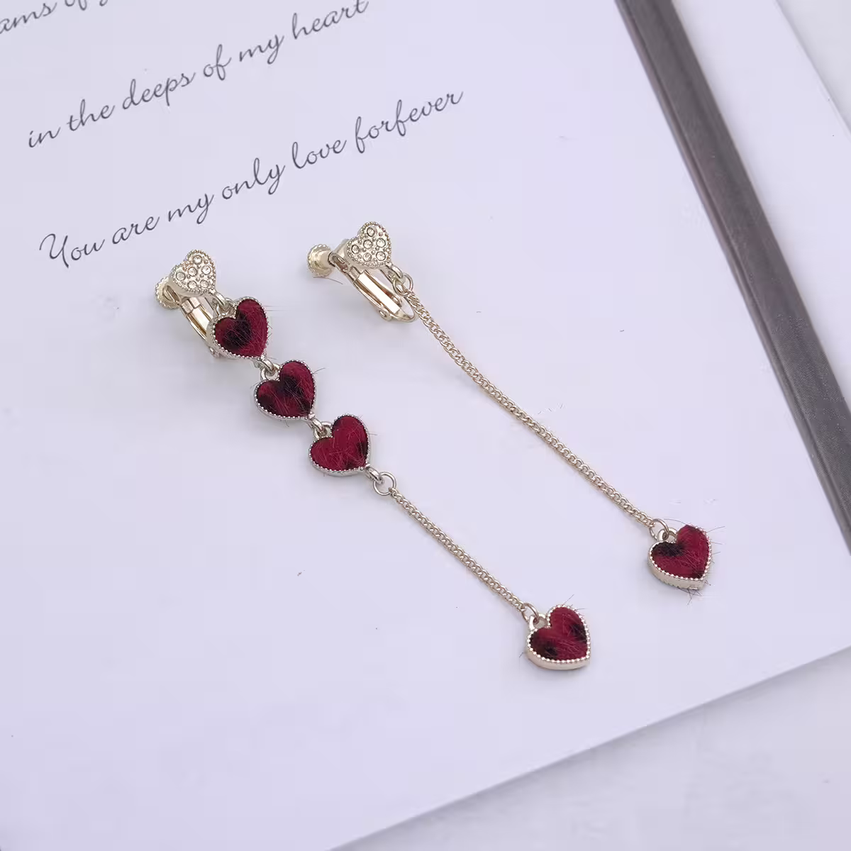 ▶名稱/植絨紅豹愛心×不對稱螺旋耳夾