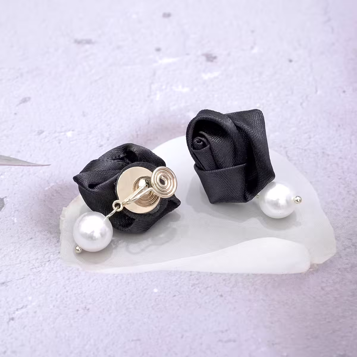 ▶名稱/黑玫瑰珍珠×蚊香盤U型耳夾