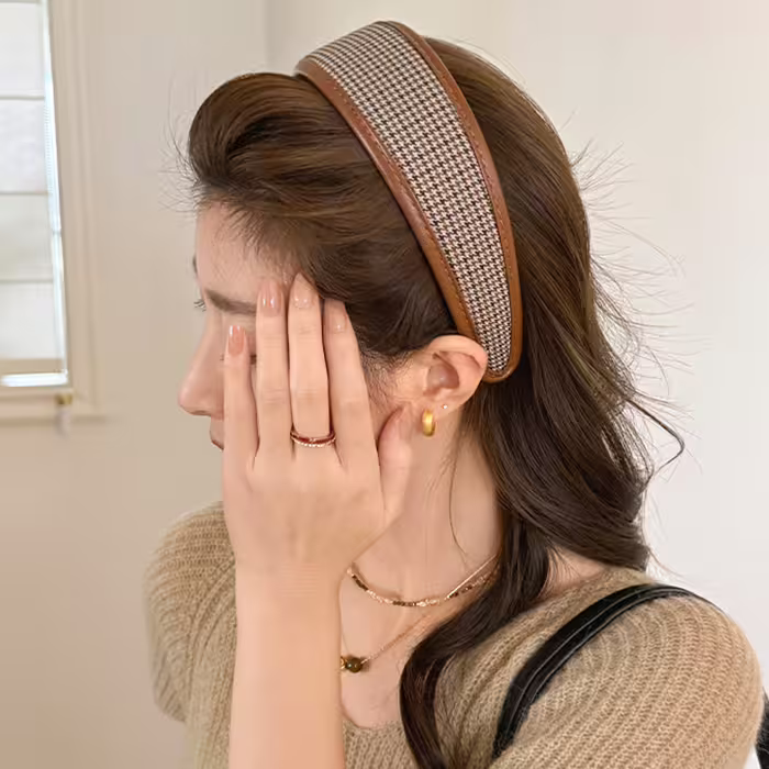 ▶名稱/皮質包邊千鳥紋×髮箍造型