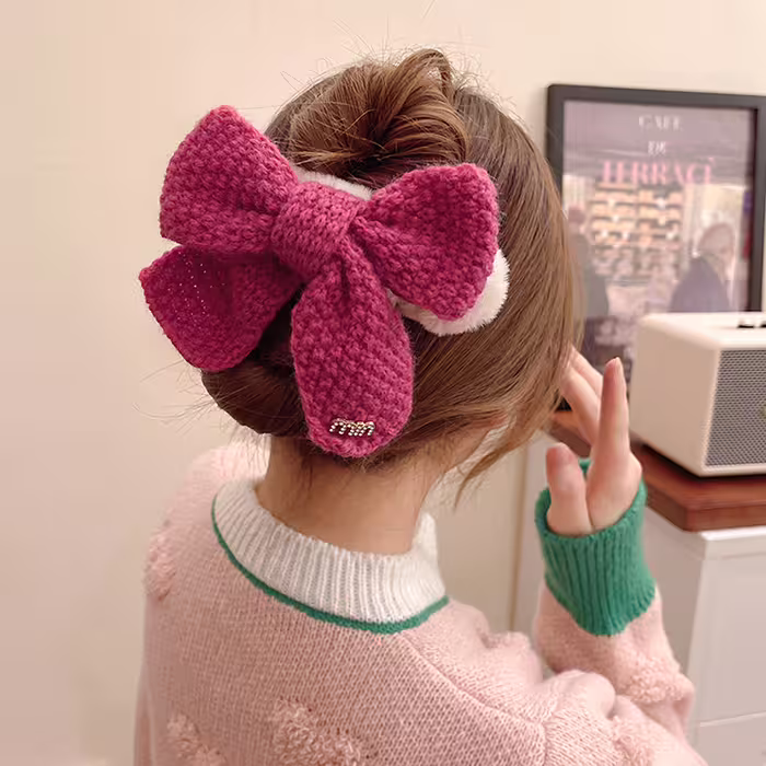 毛線蝴蝶結×鴨嘴夾×共三色-第5張