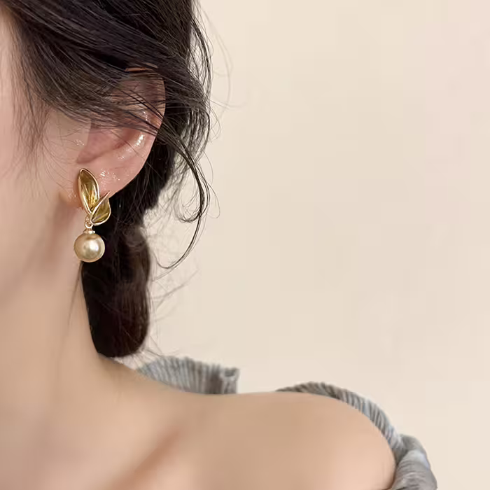 森系棕咖樹葉珠珠×吊墜耳環-第1張