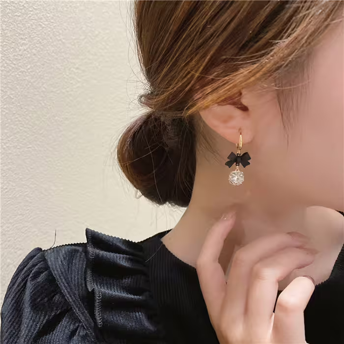 ▶名稱/黑領結C字輕奢晶鑽球×蚊香盤U型耳夾