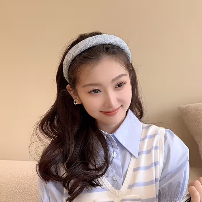 ▶名稱/藍白菱紋小香風毛呢×髮箍