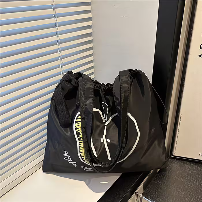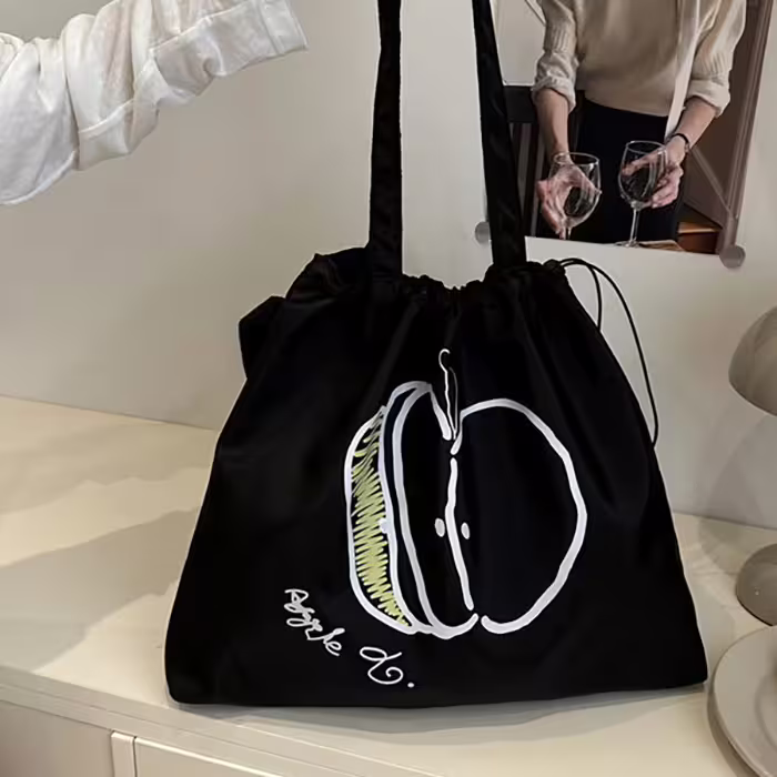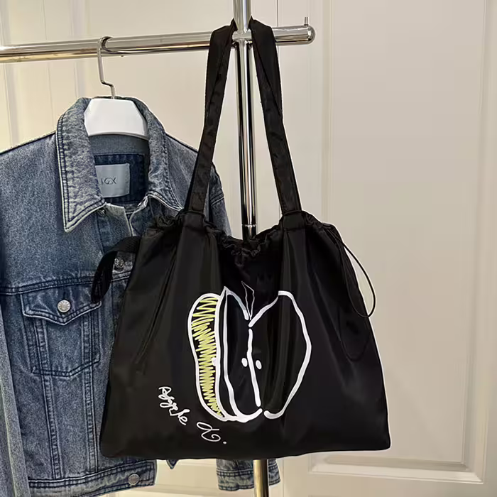 ▶名稱/大蘋果印花束口袋×肩背包×黑色