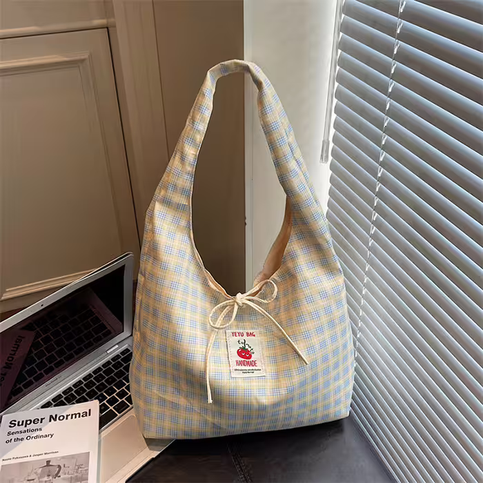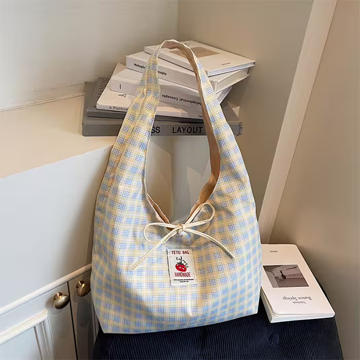 格紋蝴蝶結小蕃茄×肩背包×米黃