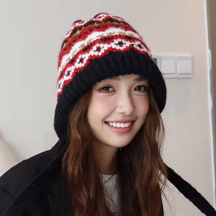 ▶名稱/費爾島毛線格紋×毛帽×黑紅