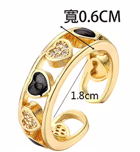金黑愛心鏤空晶鑽×開口戒指-第1張