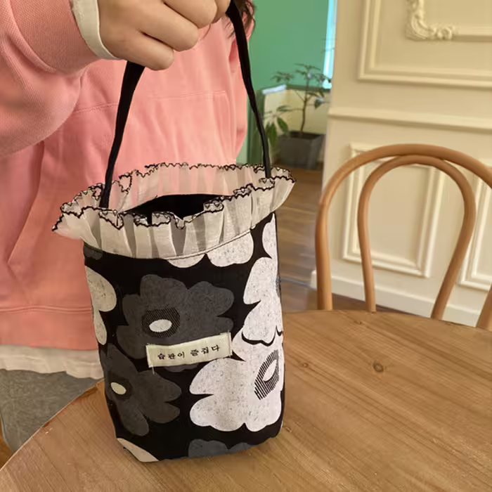 蕾絲邊韓文×輕巧手提袋×花朵-第6張