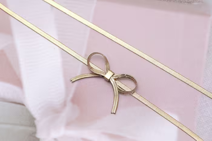 ▶名稱/316鋼飾×扁平蛇骨蝴蝶結×項鍊
