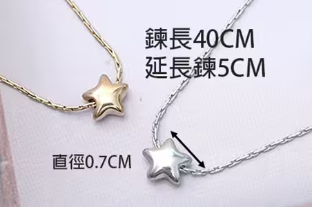 ▶尺寸/星星直徑0.7cm,鍊長40cm,延長鍊5cm