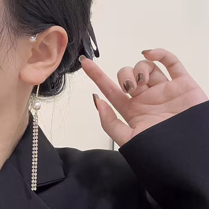 ▶名稱/金色珍珠流蘇晶鑽×單邊耳掛