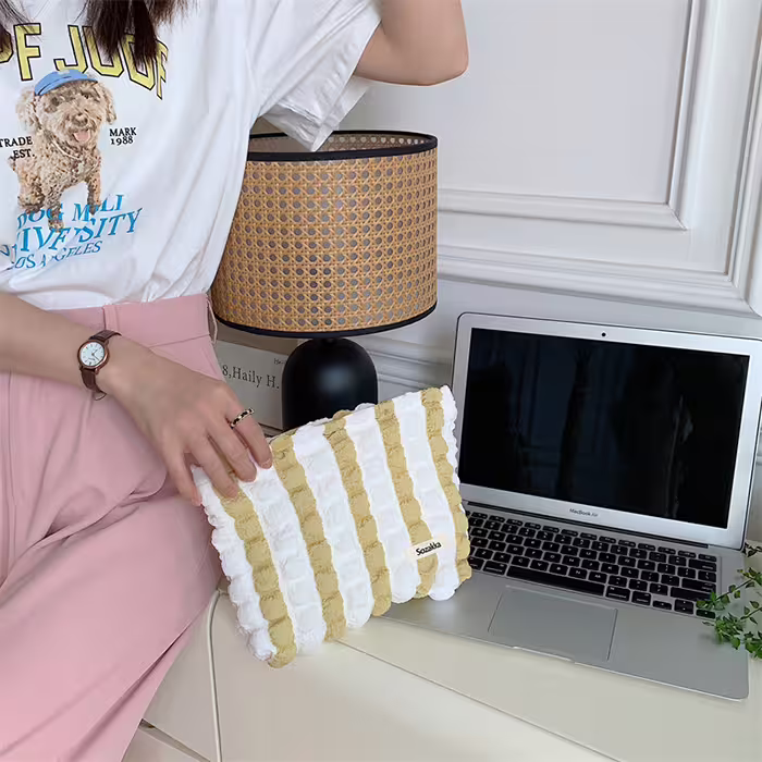 ▶名稱/泡芙雲朵包×化妝包×黃條紋
